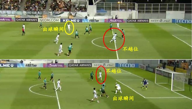 由于直播时没有给出更好的角度,只能以这图为判断。那么法比奥头球传球给林良铭时越位了吗?也应该不越位,注意看图片下方。从两人的站位来看,不像是越位